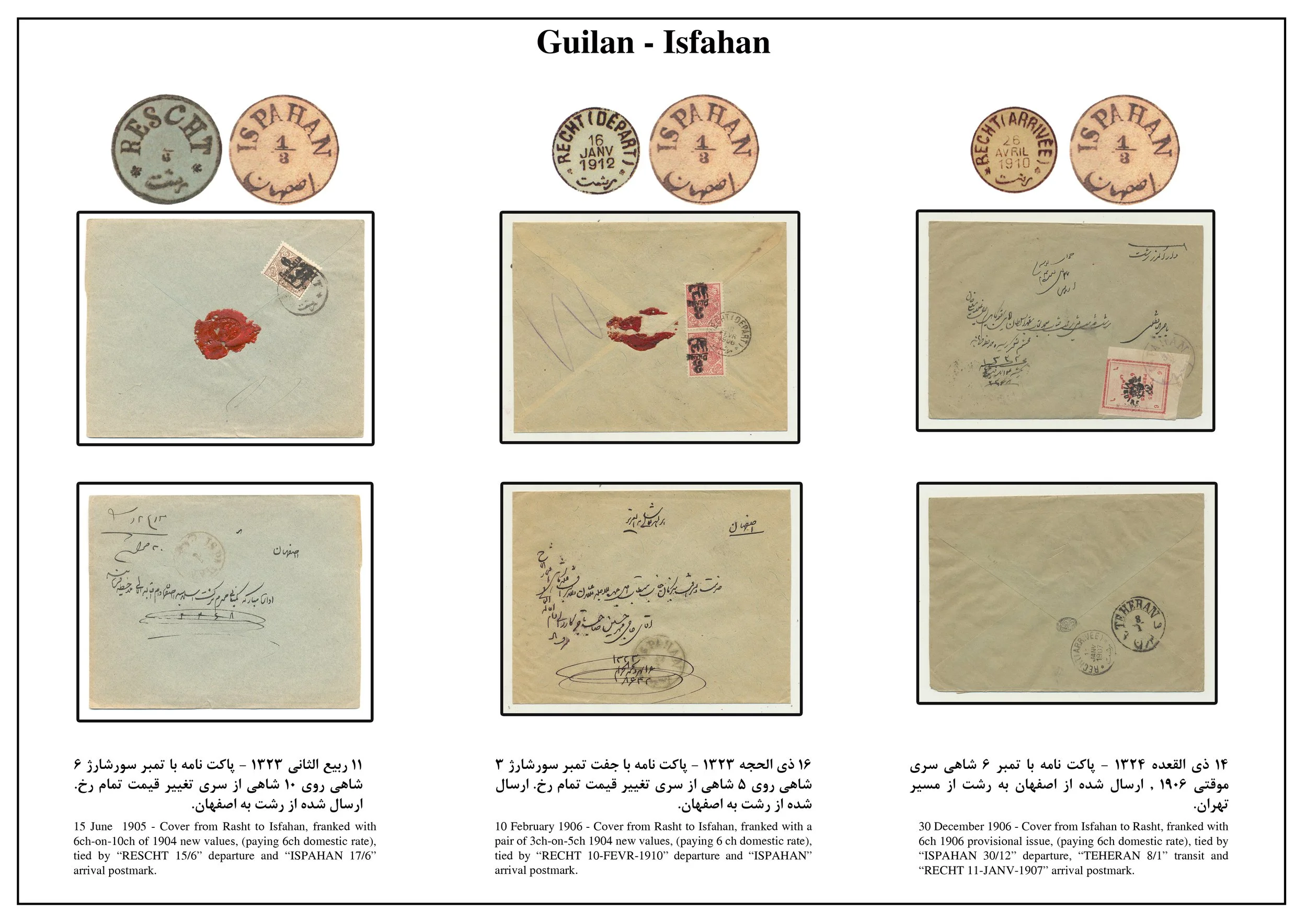 Rasht is the capital city of Guilan Provence. Historically, Rasht was a primary transport and business center which connected Iran to Russia and Europe. This exhibit presents Covers from Rasht, Lahijan, Langroud, Anzali, and Baku( via Baku-Enzeli mail) to Isfahan In the Qajar and Pahlavi I eras.